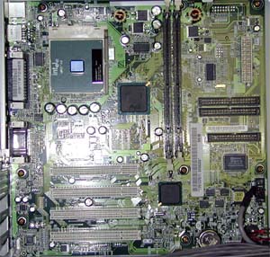 チップセットは810Eとなっている。昨年、i820がこけて急遽FSB133MHz対応チップセットとして出たことは記憶に新しい。しかし、ランドはあるのだが、今回もキャッシュは搭載されていない。 ![]()